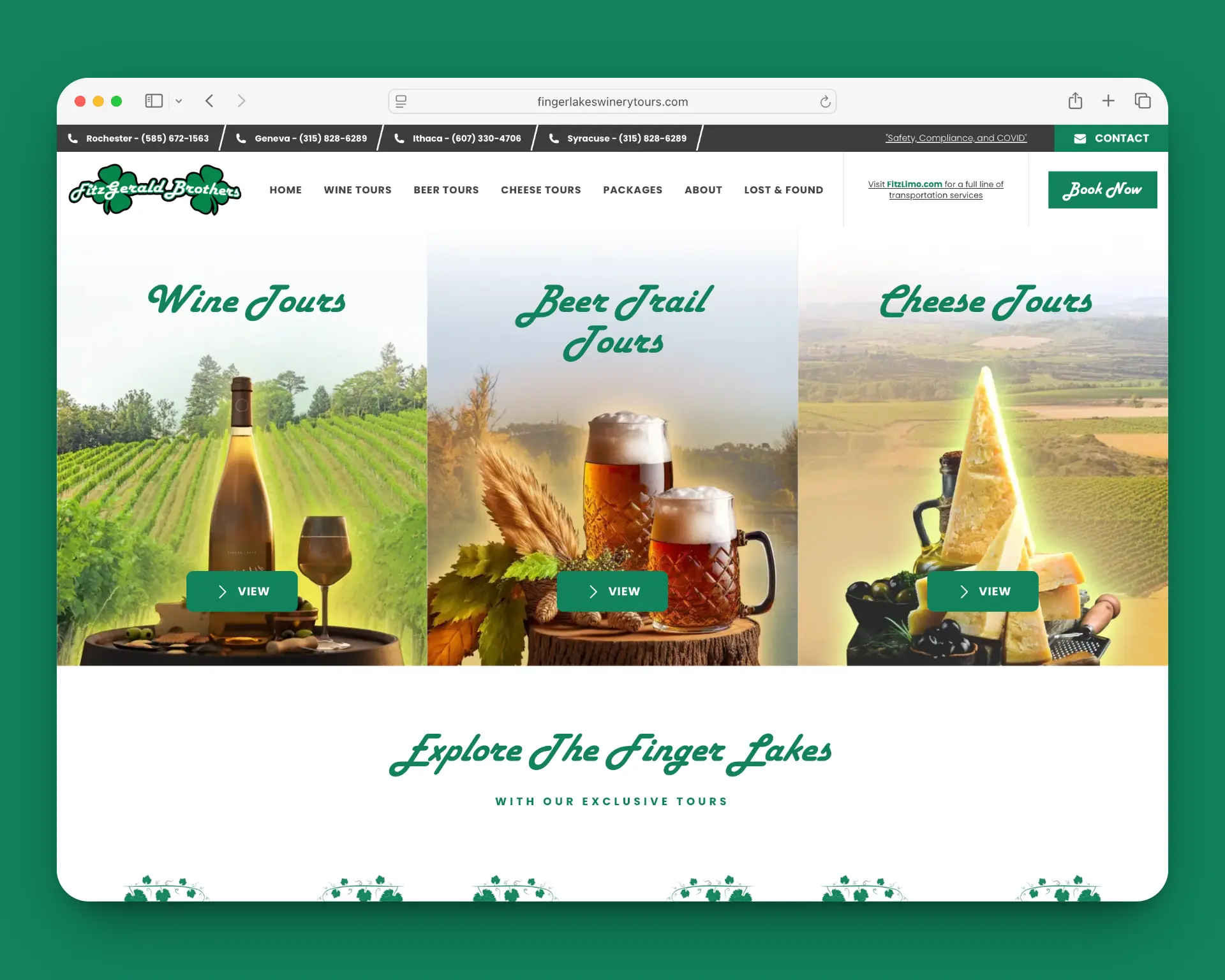 Information on a product or service is readily available on the web, but information combined with a user experience that creates customers—that's what businesses need to stay ahead. Finger Lakes Winery Tours' original website had plenty of relevant information about wine tours, beer trails, and cheese tours across Keuka, Seneca, and Cayuga Lake. What it lacked, however, was a way for site visitors to go from browsing to booking, essentially leaving users to their own devices when it came time to plan and book a tour. The company also had the challenge of balancing their diverse activities without favoring one over the other.