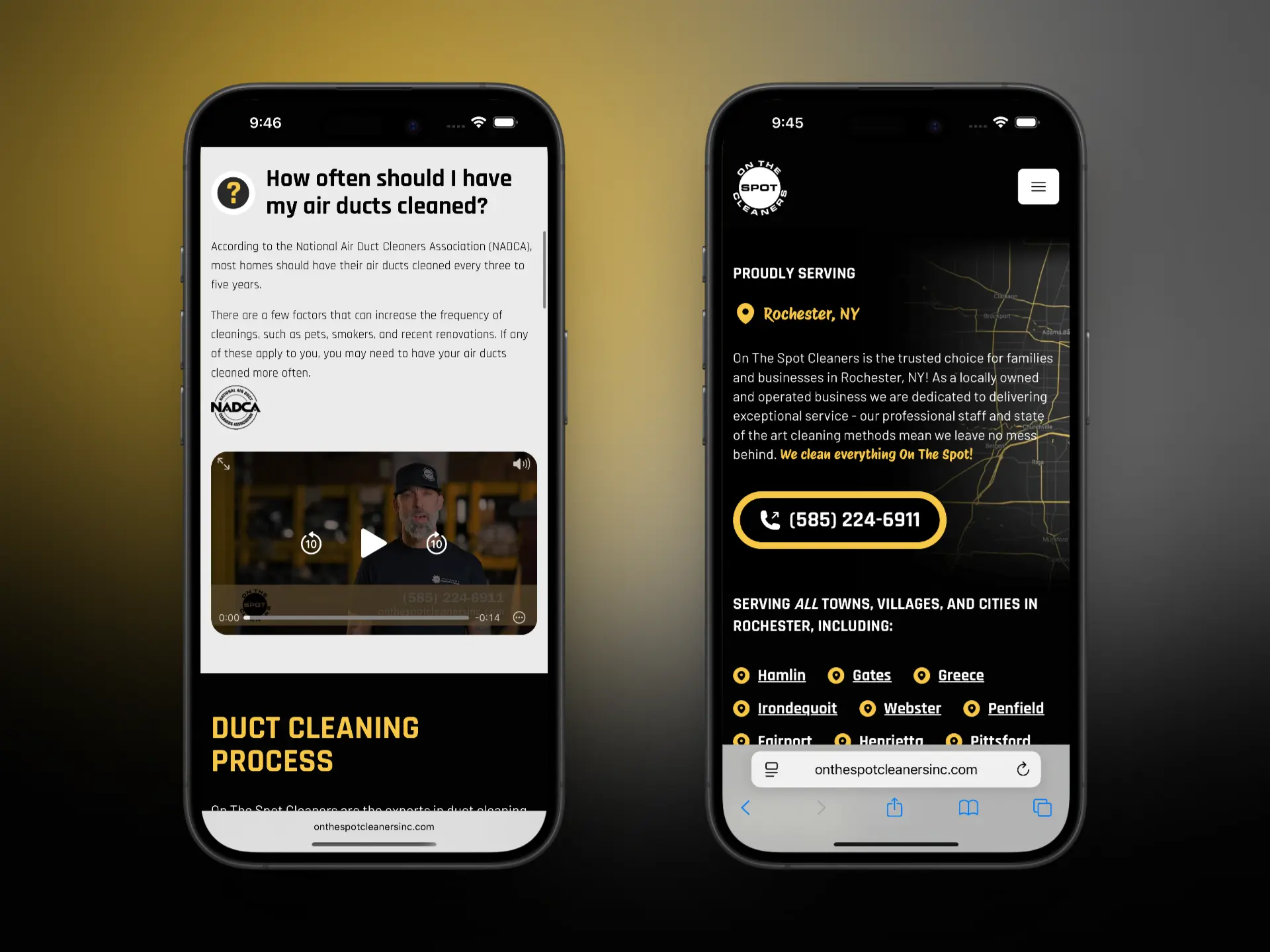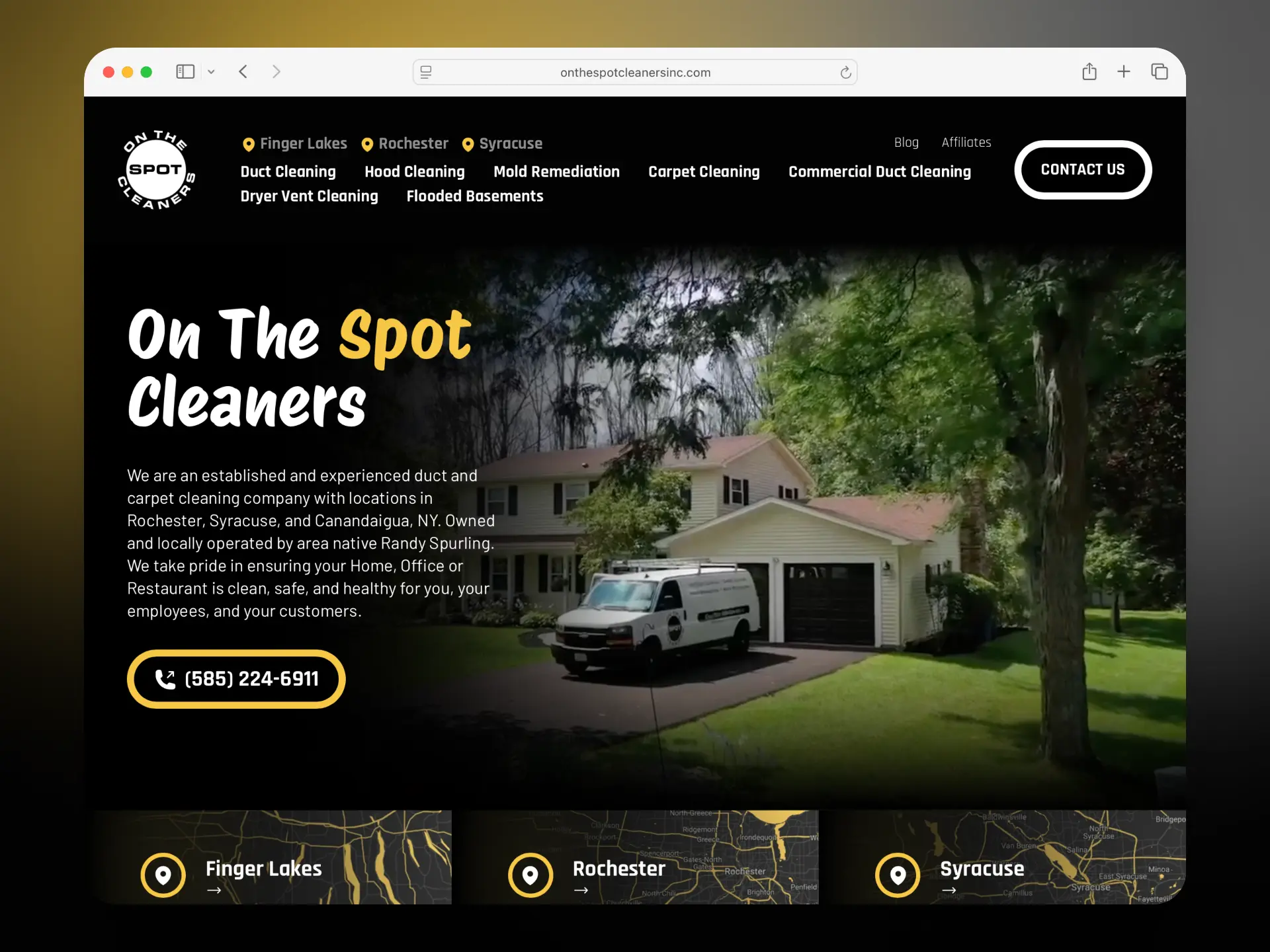 Our solution was to create a website that made it clear from the first view that On The Spot Cleaners has the professional expertise to handle everything from mold remediation to duct and carpet cleaning, anywhere in their region.